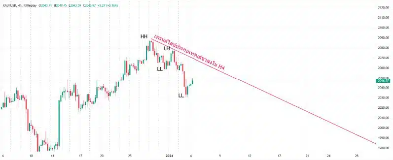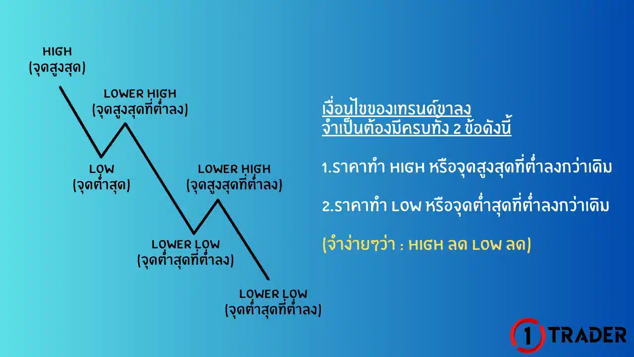 - ราคาทำ Low หรือจุดต่ำสุดที่ต่ำลงกว่าเดิม