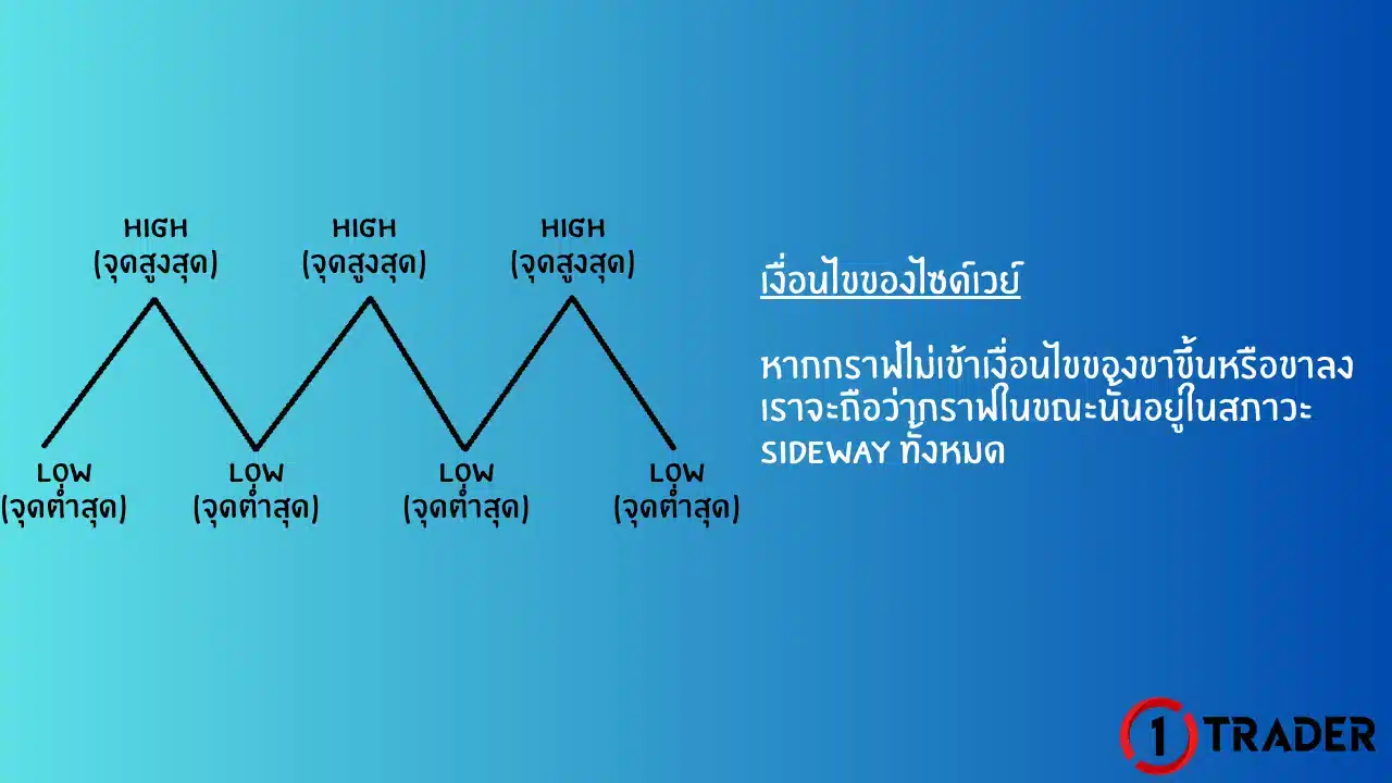 หากกราฟไม่เข้าเงื่อนไขของแนวโน้มขาขึ้นหรือขาลงเราจะถือว่ากราฟในขณะนั้นอยู่ในสภาวะ SIDEWAY ทั้งหมด