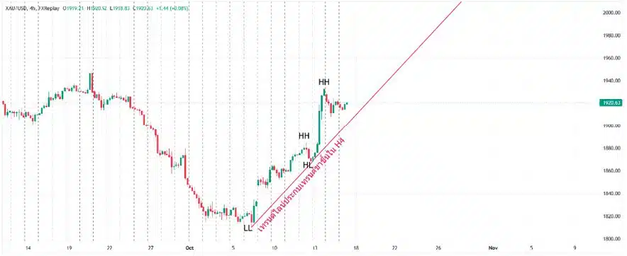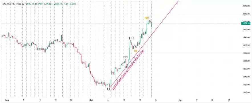 - ราคาทำ High หรือจุดสูงสุดที่สูงขึ้นกว่าเดิม